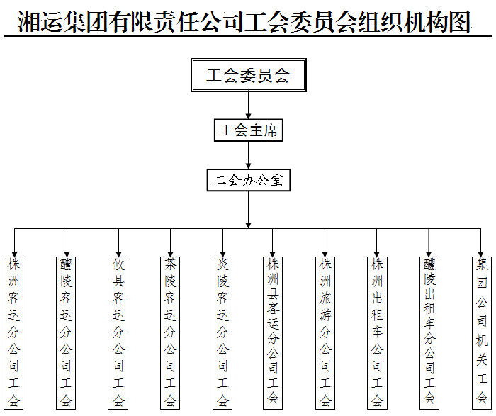 湘運(yùn)集團(tuán)有限責(zé)任公司系湖南省株洲地區(qū)最具規(guī)模、舉足輕重的專(zhuān)業(yè)化道路運(yùn)輸龍頭企業(yè),是以運(yùn)輸產(chǎn)業(yè)為主,房地產(chǎn)開(kāi)發(fā)、商貿(mào)餐飲等為輔的多元化經(jīng)營(yíng)的企業(yè)集團(tuán)。集團(tuán)公司設(shè)工會(huì)委員會(huì),下設(shè)9個(gè)二級(jí)工會(huì),現(xiàn)有工會(huì)會(huì)員1026人,員工入會(huì)率達(dá)100%。