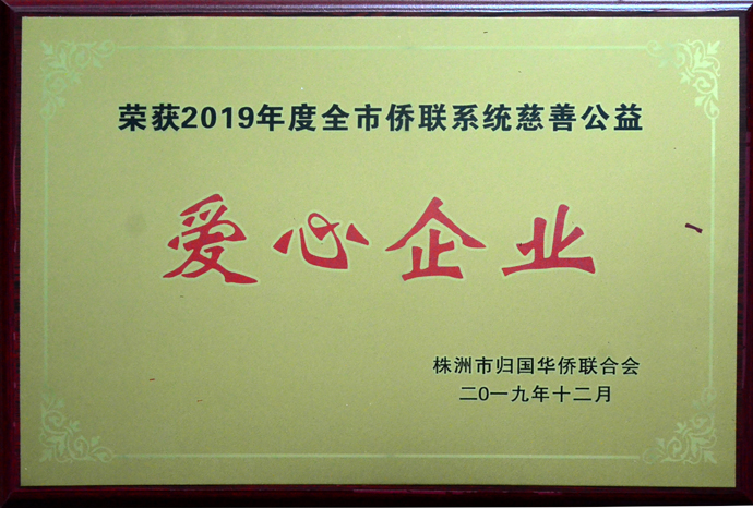 集團公司榮獲“株洲市2019年度僑聯(lián)系統(tǒng)慈善公益愛心企業(yè)”稱號
